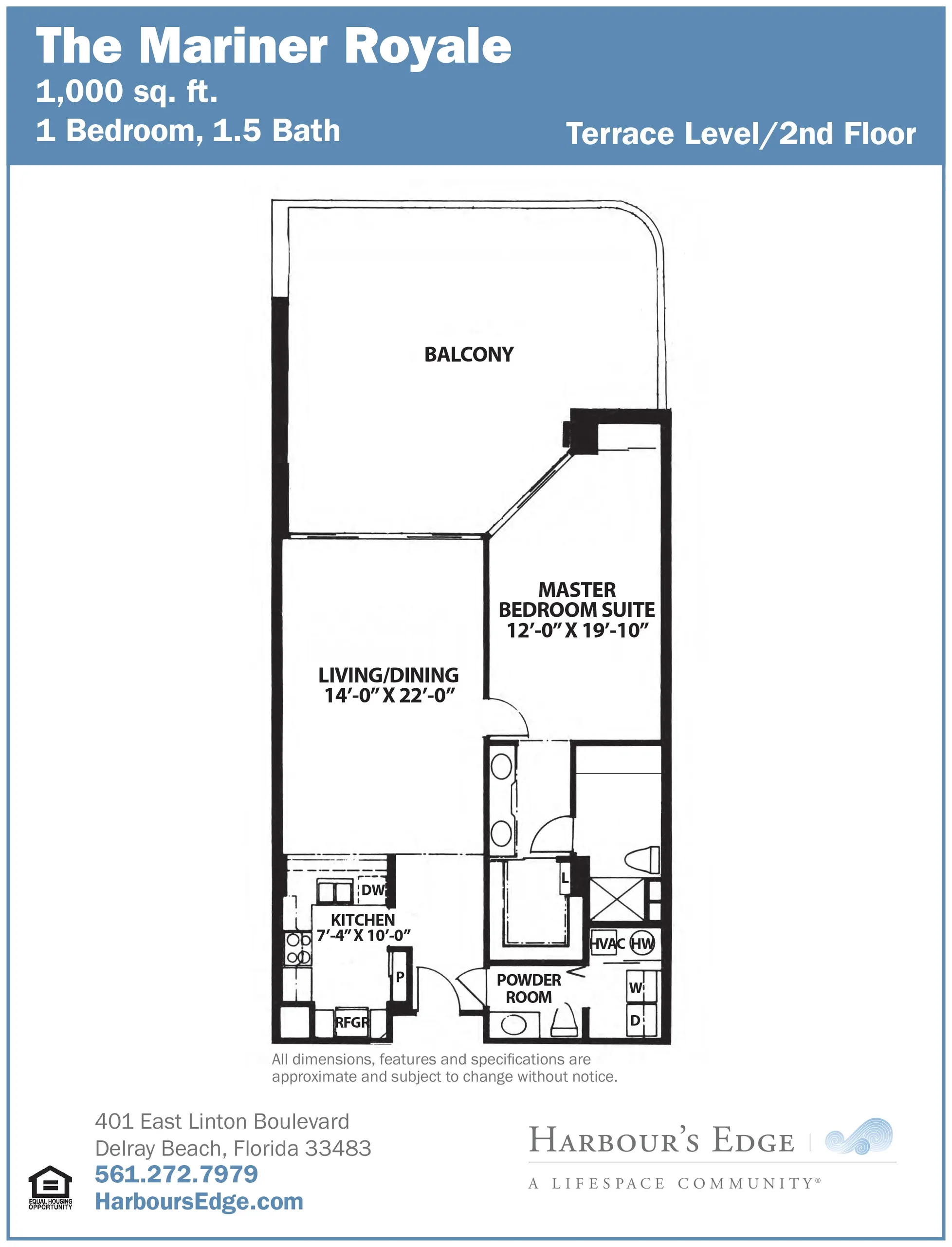 Escape to seaside serenity in this thoughtfully designed 1-bedroom, 1.5-bath residence. At 1,000-square-feet, The Mariner Royale offers spacious living areas, a private bedroom suite, and a tranquil balcony perfect for quiet reflection.